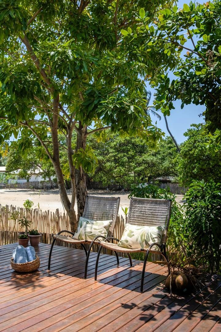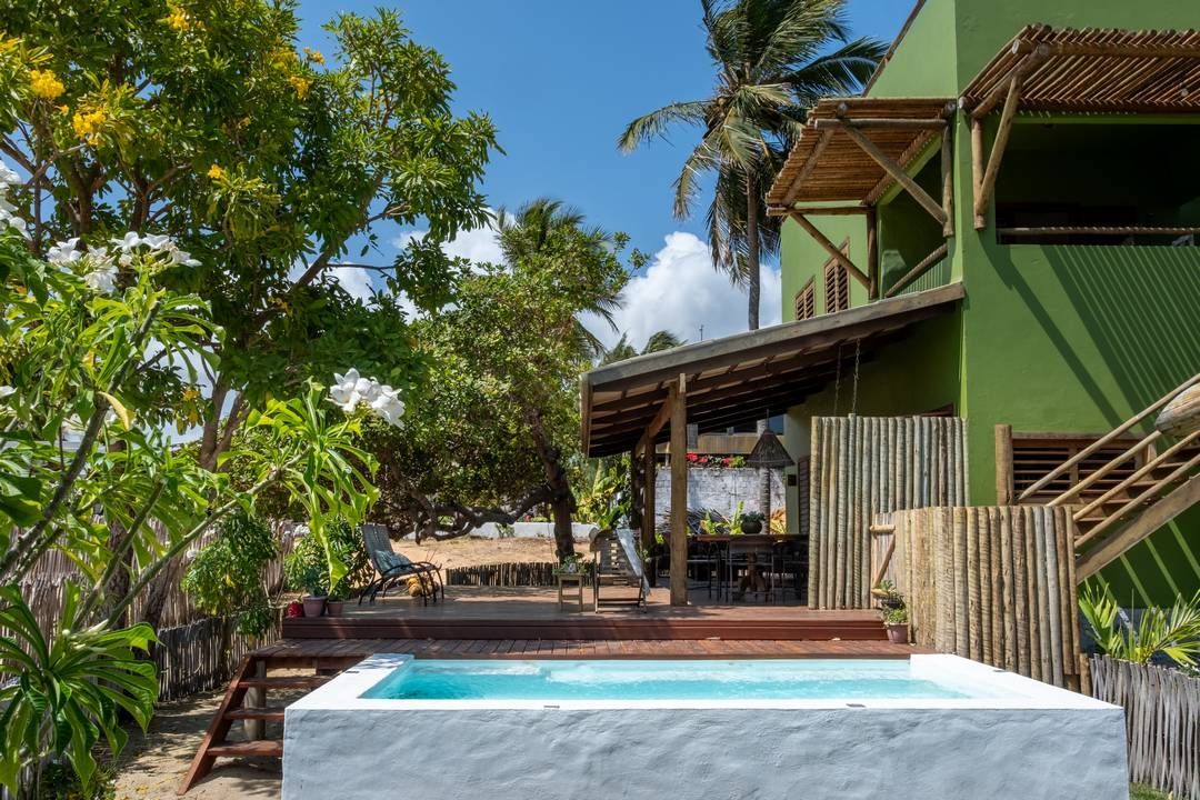Ela possui uma ótima suíte com uma cama “queen” e duas de solteiro e um banheirão amplo. Cozinha toda equipada e integrada com a varanda, um deck suspenso embaixo de um cajueiro, varanda super gostosa e uma piscininha deliciosa!
