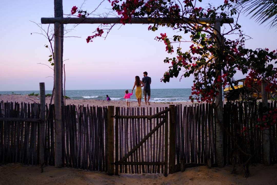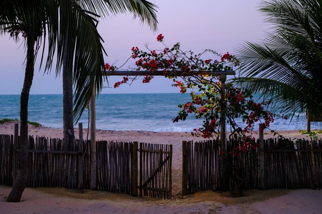 Temos também uma opção no andar superior da casa, que é o Apê Flor! Um apartamento independente, com acesso sem comunicação com a casa, deixando os dois com privacidade garantida. O Apê Flor possui sua própria cozinha equipada ( e também com vista pro mar), com cama queen e duas de solteiro, um bom banheiro e uma varandinha maravilhosa quase dentro de um cajueiro e de cara praquele marzão.