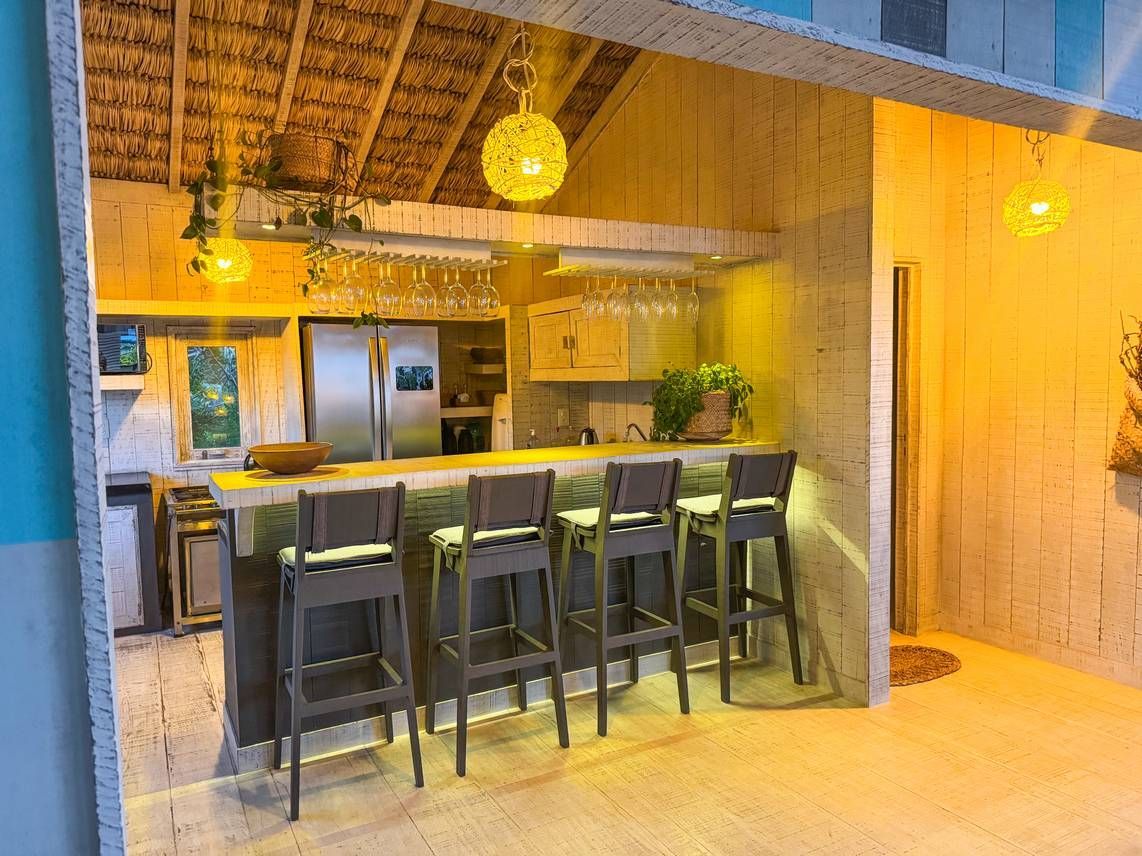 Para os hóspedes com crianças, a casa de temporada oferece uma área de lazer coberta e um equipamento de recreação ao ar livre. Após um dia de mergulho com snorkel, ciclismo ou trilhas a pé, você pode relaxar no jardim ou no lounge compartilhado.