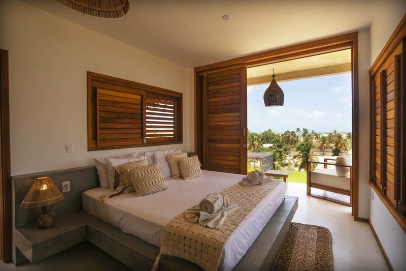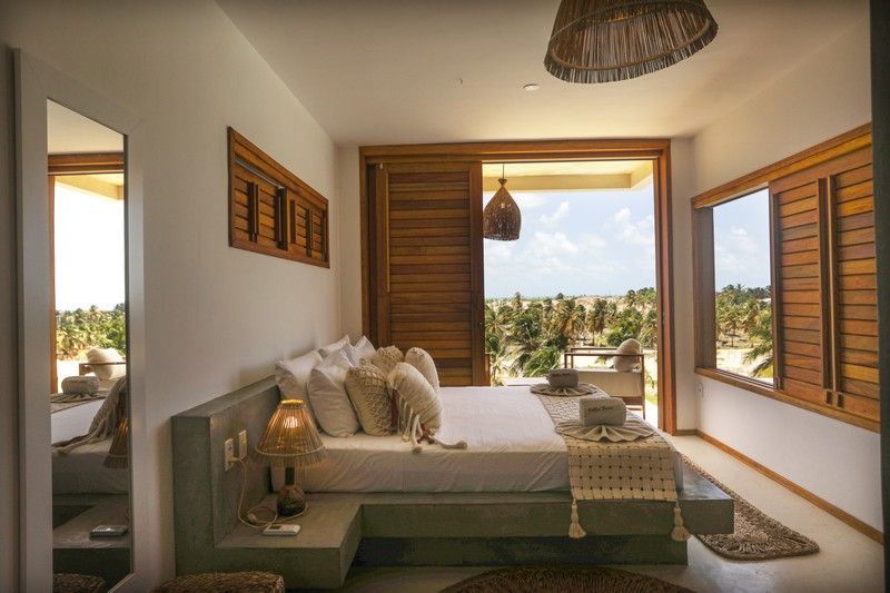 Esplêndida casa de arquiteto no alto de uma duna com vista para o coqueiral e o mar.